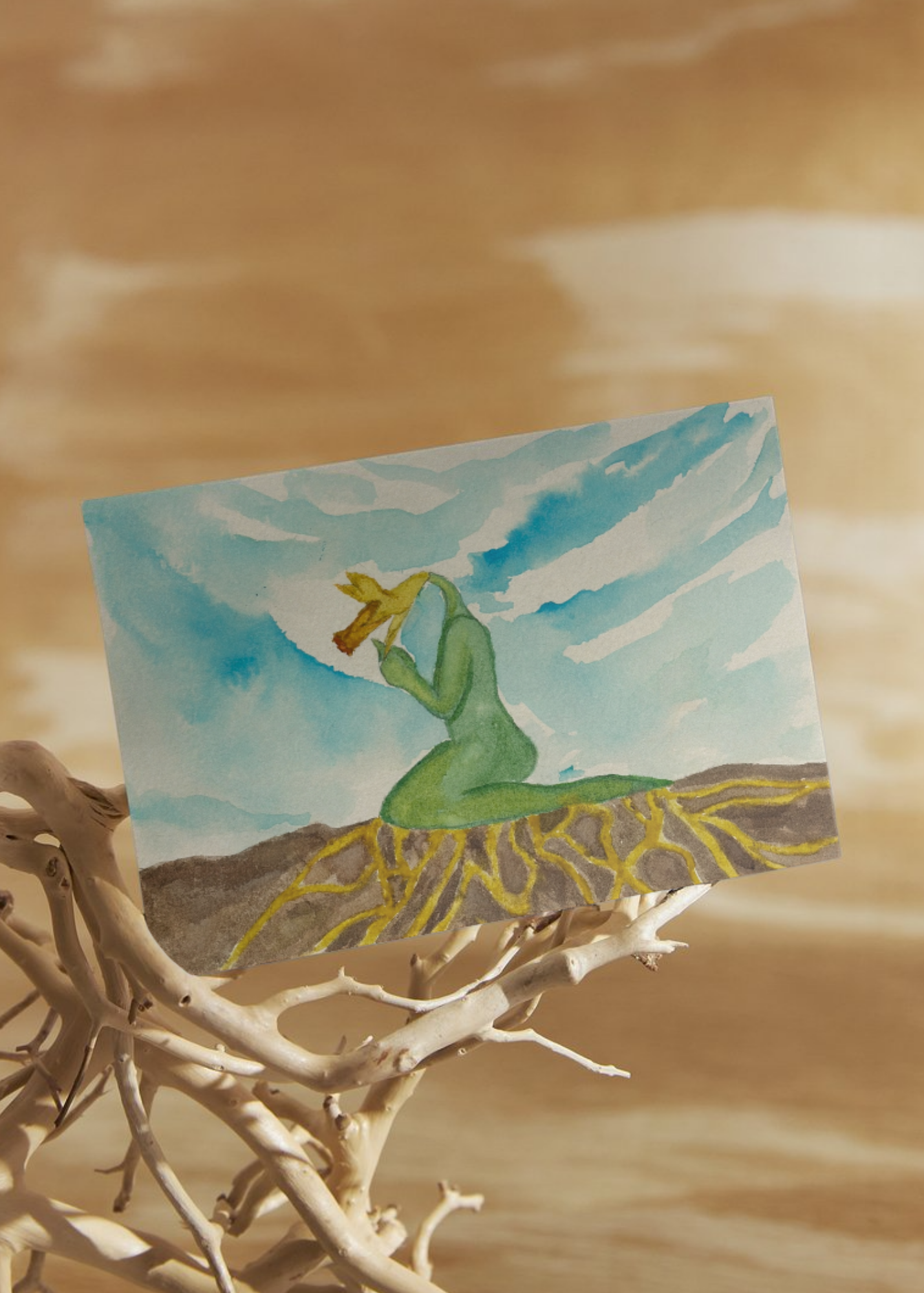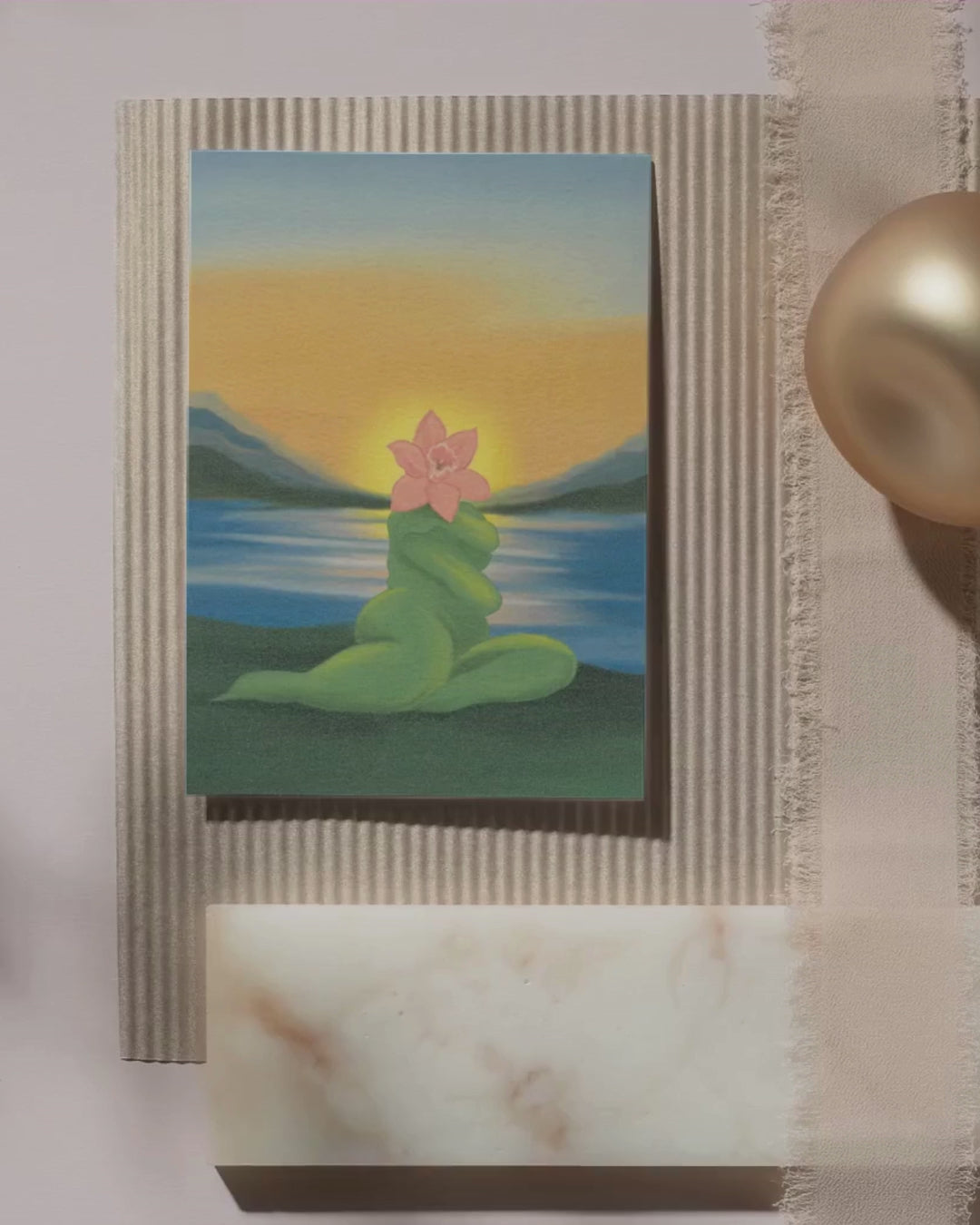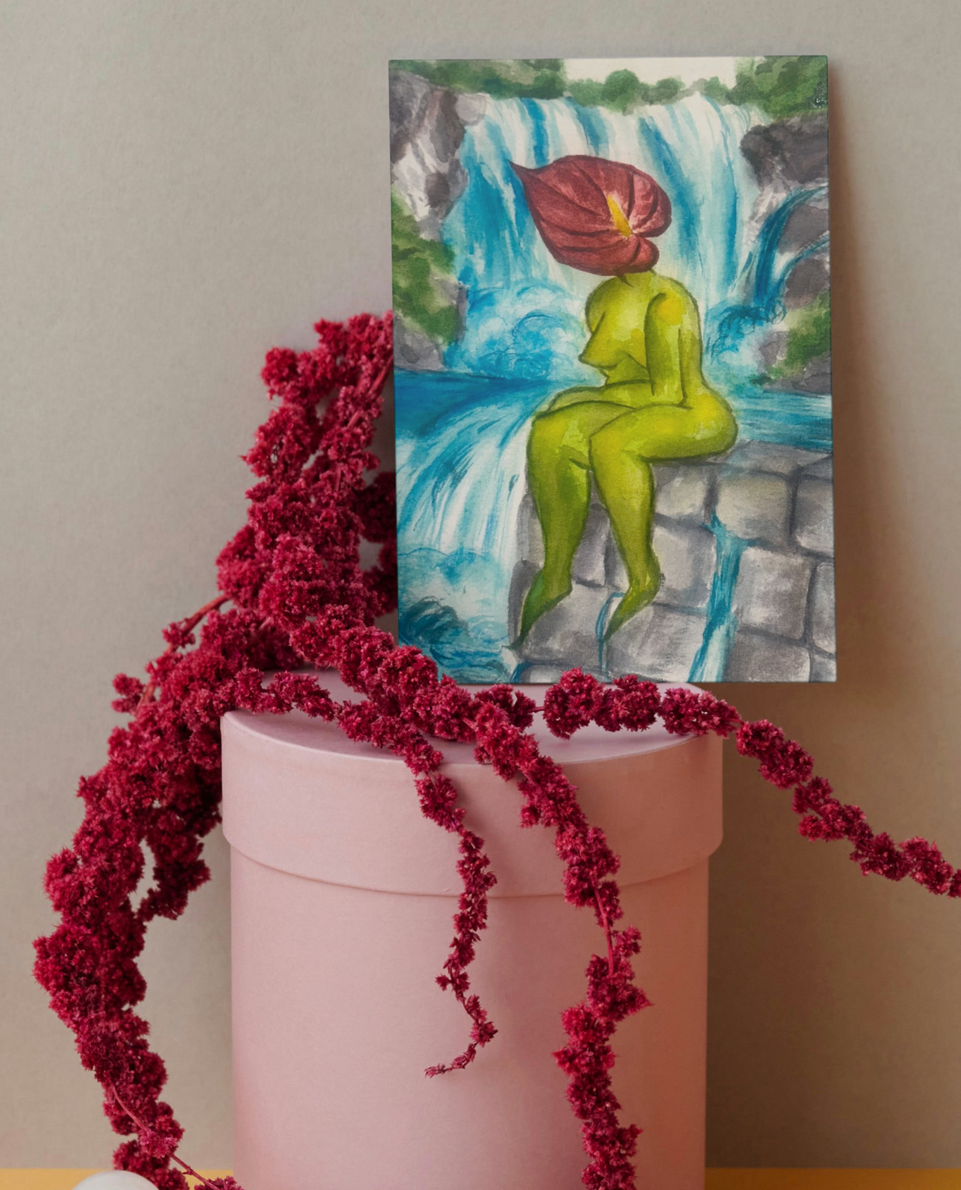 A monthly piece of art and a personal note with an affirmation mailed to you as a reminder to slow down and water yourself.