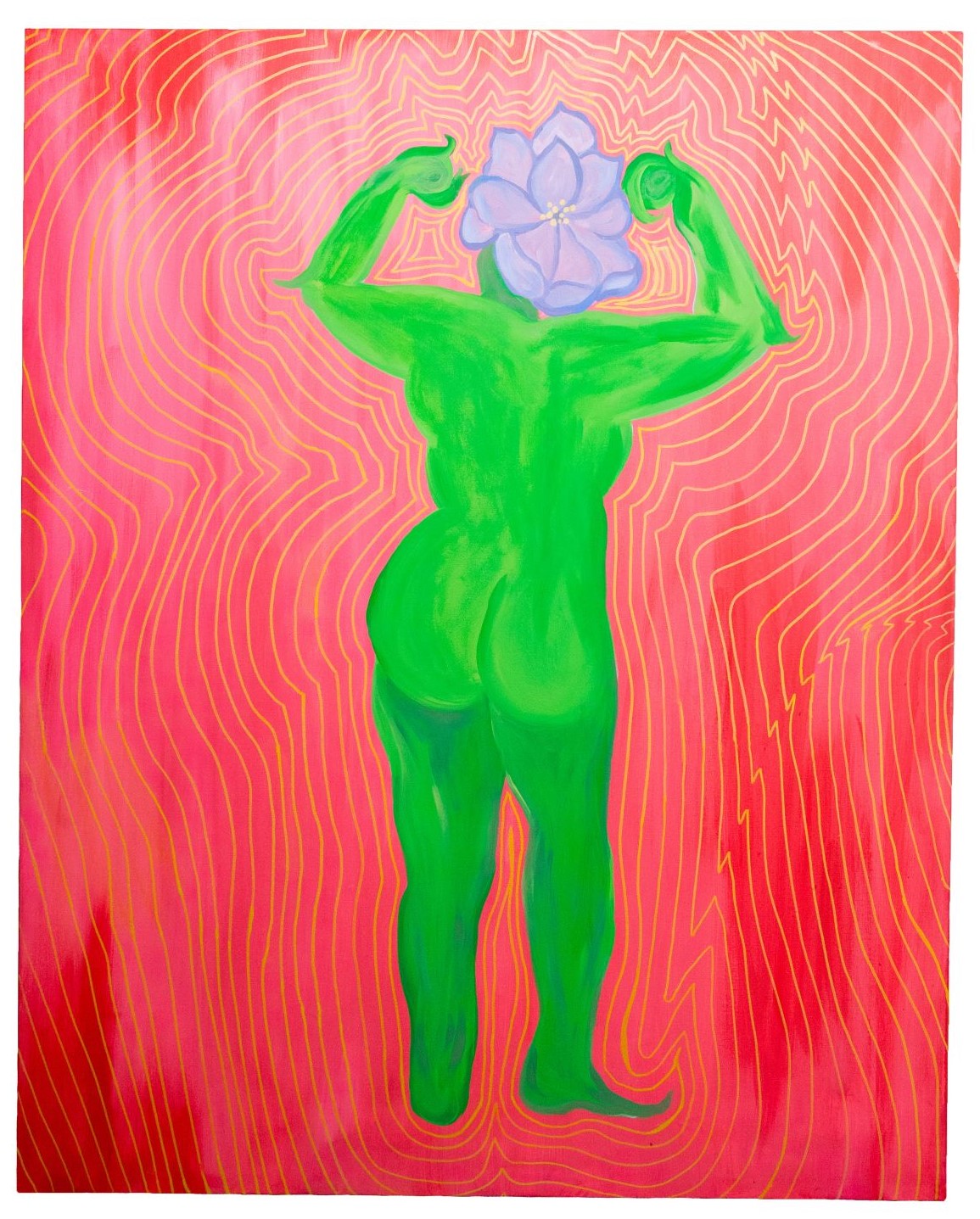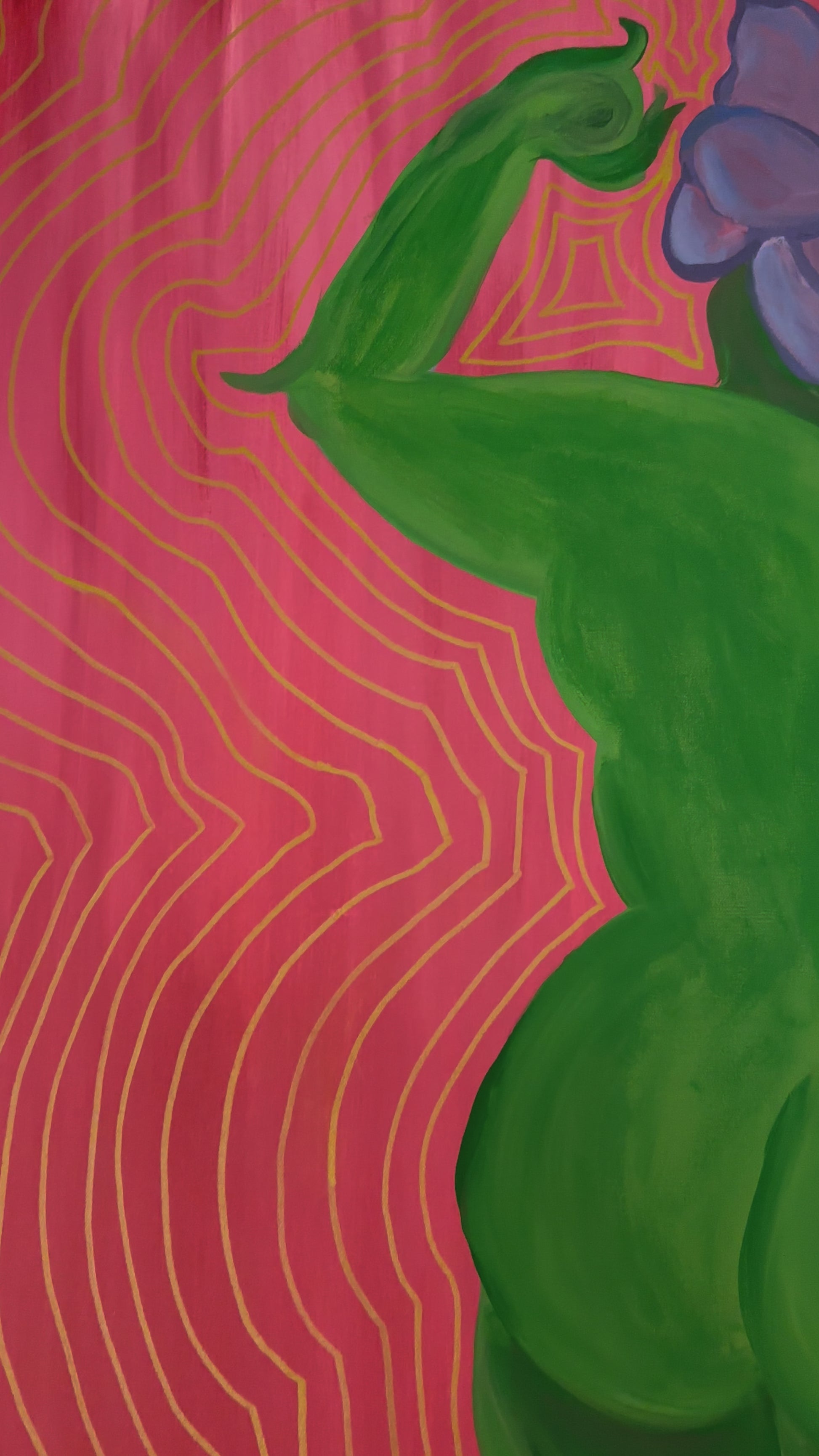 This painting depicts the boundless strength we have within. The figure, with African Violet a flower for a head, stands confidently with arms flexed, symbolizing inner power and resilience. The vibrant background and flowing lines represent the energy and vitality that emanate from embracing one's strength.